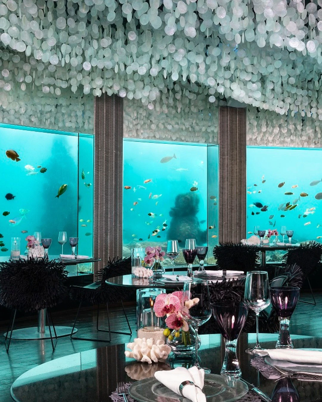 Изысканная кухня сочетается здесь с невероятными морскими пейзажами. Пока шеф-повар колдует над деликатесами, вы можете наблюдать за жизнью подводного царства через огромные панорамные окна.
